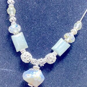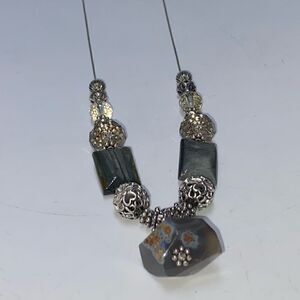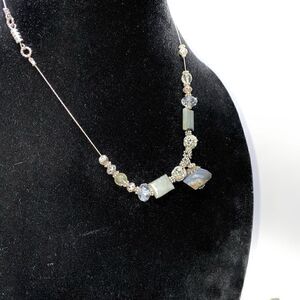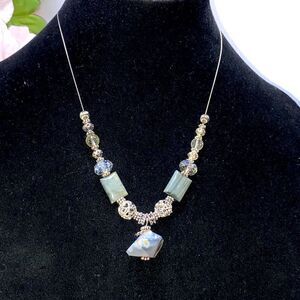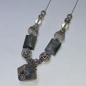 Natural Stone Agate And Glass Bead Sterling Silver Necklace