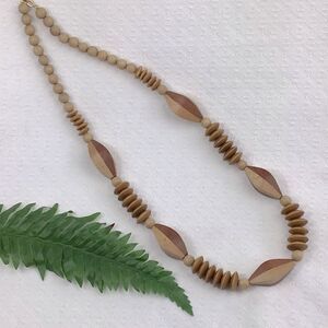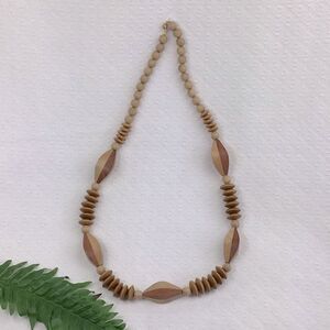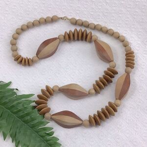 Lovely Natural Wood Bead Geometric Necklace with gold clasp