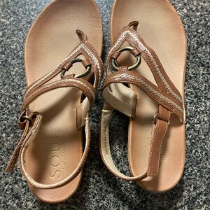 Brown straps with gold ring in the middle! Perfect condition maybe wore 3 times!!