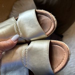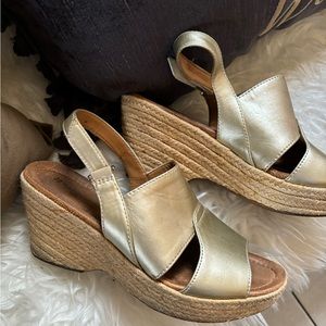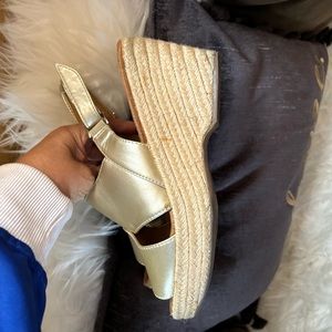Gold wedge sandals ! Very clean nice look patent comfortable espadrille sandals ! Good condition. Size 8 .