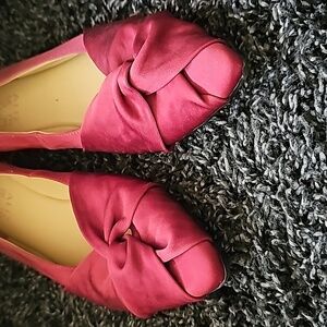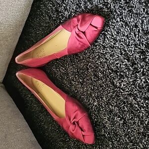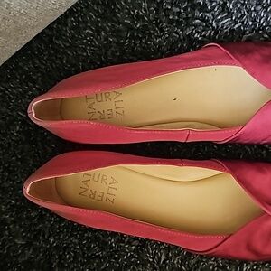 Red satin like shoe. Pointy toe, has a slight heel. I only wore inside house, there is a small mark towards the back, see close up. Clearing out some of my shoe collection. I love naturalizer shoes, theyre great for the office, casual or parties! Fall, autumn, classy, dressy, girly, feminine, goth