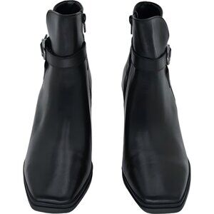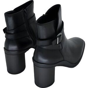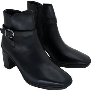 Sleek black leather ankle boots with square toes and block heels. Water-resistant, versatile, and easy to wear. Review photos for details.