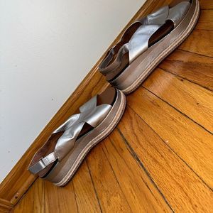 Naturalizer Baya Platform Silver Sandals Metallic Espadrille Wedge Size 12 M