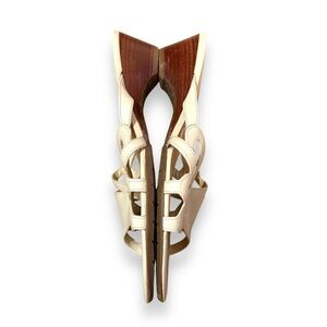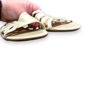 Naturalizer Beige Leather Open Toe Strappy Slip On Heel Sandals