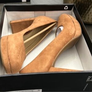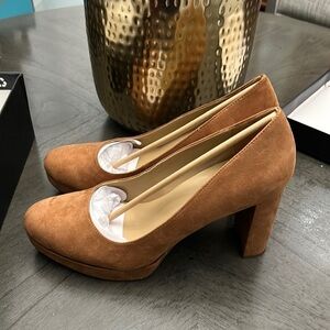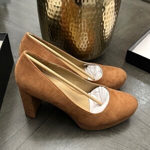 Dressed to impress. A platform pump with a slip-on fit, U-shaped vamp and pretty silhouette accentuates every look. Get there beautifully. Classic platform pump with slip-on fit. Manmade upper with an almond toe. Contour+ technology for a premium fit and all-day comfort experience. Non-slip outsole. 3 3/4" platform heel. Consciously packaged: 100% of our shoe boxes are made of 80% recycled paper + soy-based ink. Designed using sustainable materials. WHY YOU'LL LOVE IT: Ingenious elegant utility. All-day heels that scale the height of chic with endless versatility and comfort that is downright clever.