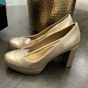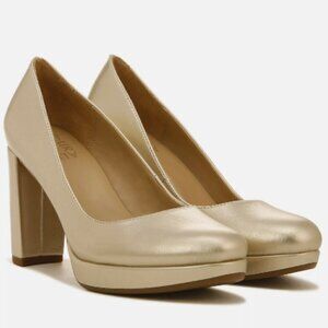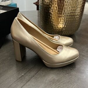 Dressed to impress. A platform pump with a slip-on fit, U-shaped vamp and pretty silhouette accentuates every look. Get there beautifully. Classic platform pump with slip-on fit. Manmade upper with an almond toe. Contour+ technology for a premium fit and all-day comfort experience. Non-slip outsole. 3 3/4" platform heel. Consciously packaged: 100% of our shoe boxes are made of 80% recycled paper + soy-based ink. Designed using sustainable materials. WHY YOU'LL LOVE IT: Ingenious elegant utility. All-day heels that scale the height of chic with endless versatility and comfort that is downright clever.