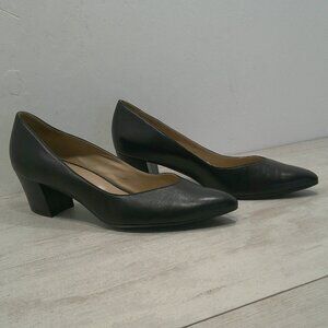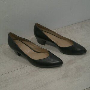 Naturalizer Black Classic Reto Leather Pointed Toe Mali Pumps Size 9 W | Wide