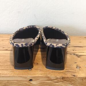 Naturalizer Black Fabric Mule with Animal Print Trim and Patent Leather Heels Square Toe and Heel Sz 8.5. Pre-owned, these shoes are in great condition. Very minimal wear.