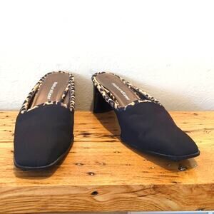 Naturalizer Black Fabric Mule w/ Animal Print Trim & Patent Leather Heels Sz 8.5