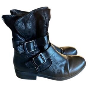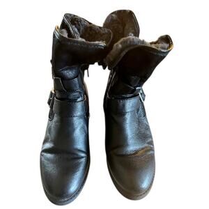 Naturalizer Black Leather Ankle Boots – Faux Fur Lined Buckle Style Size 6.5