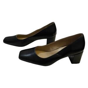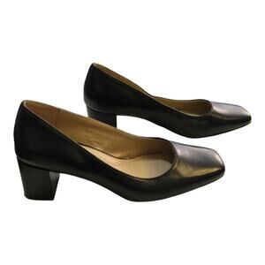 Naturalizer Black Leather Comfy Square Toe Block Heel Pumps Size 7.5 W WIDE