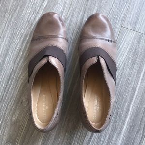 Naturalizer bootie with 2 1/2” high heel. N5 Comfort line, leather with elastic band on front. Gently worn, in great condition. 100% leather. Beautiful brownish gray tone. Size 11M