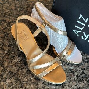Naturalizer Brenta bronze pearl 3” slingback strappy heel NIB 12M