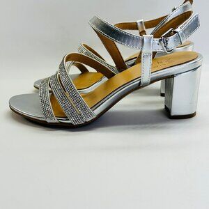 Naturalizer Bridget 4 Rhinestone Block Heel Sandal Size 6M Silver Dress Shoe