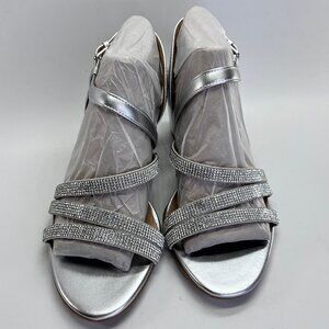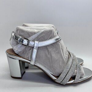 Naturalizer Bridget4 Silver Strappy Rhinestone Sandal Size 8.5 WIDE Block Heel