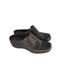 Naturalizer Brown Faux Leather Zippered Slip-On Backless Clogs Women's Size 7.5