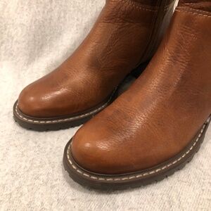 The inside of the boots have super-soft tan fleece-like lining, and the inner side of each boot has a zipper that unzips for easy on/off. The top of each boot to the top of its block heel measures 12.5 inches.