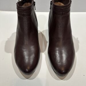 * Naturalizer Brown Leather Wedge Zip Ankle Boots N5 Contour Women's 9.5