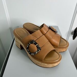 Naturalizer Clara Brown Chunky Heeled Slip On Sandals