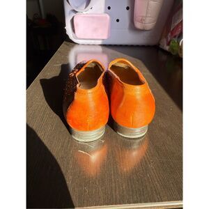 In direct sunlight here in the photos they appear more orange but they are a gorgeous cognac shade. Possibly worn once. Barely wear in the sole. Uppers are in excellent condition.
