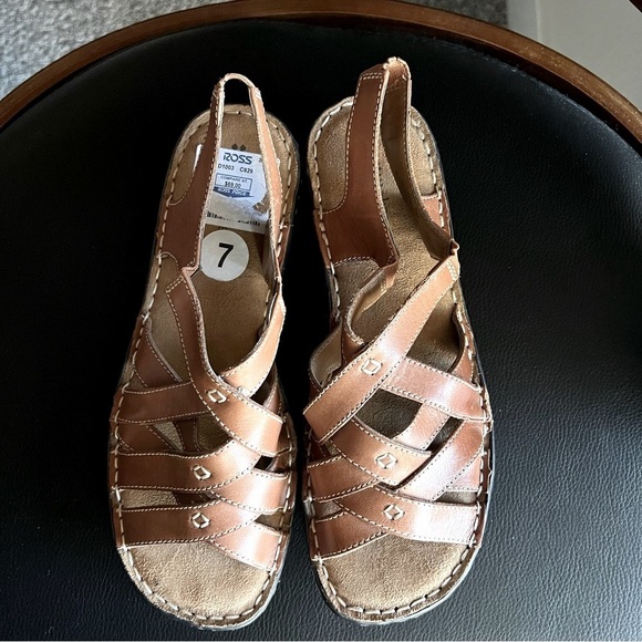 Naturalizer Craft Comfort Sandals, tan leather straps, slip on, size 7, NEW!
