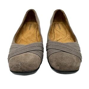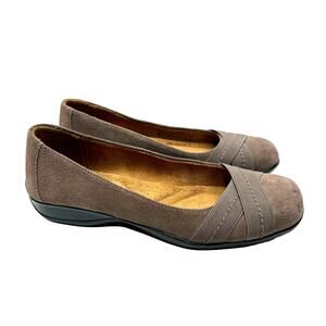 Naturalizer Creaver Taupe Suede Leather Square Toe Slip On Comfort Flats