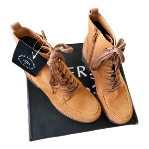 new in box. these are amazing. super soft suede boot. quality made. these are made to last. lace up but also inside zipper for easy on and off. water repellant and made to let your feet breathe. perfect for everyday wear or outdoor hiking.