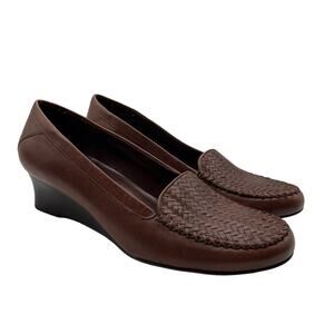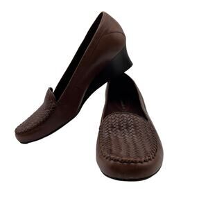 Naturalizer Demure women’s size 7 1/2 brown heeled loafer woven toe box #S0332