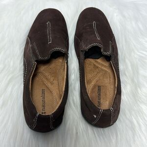 Naturalizer Fadrina Top Stitched Brown Suede Slip On Shoes Sz 6.5
