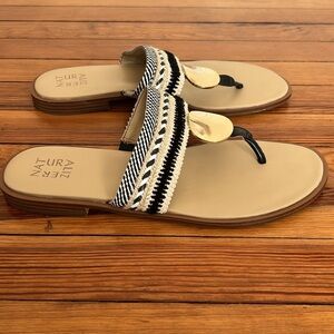 Naturalizer Frankie Black and Cream Woven Thong Sandals w/Gold Embellishment