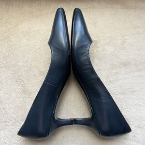 Naturalizer Gia Navy Blue Leather Low Heel Pump Women 7 Pointed Toe Classic Work