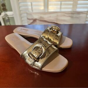 Naturalizer Gold Santiago Slip On Slide Flat Sandal With Buckle Size 7.5