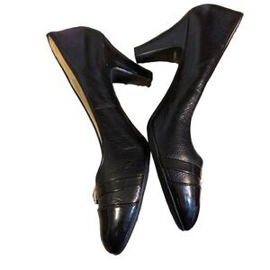 Naturalizer Heels N5 Comfort 8.5 W Bean Pump Black Patent Leather Silver Buckle