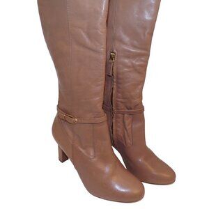 Naturalizer Henny Knee-High Buckle Detail Tall Dress Boots cafe Leather 10 New