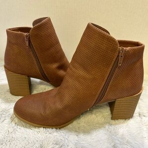 The Naturalizer HOLT Brown Perforated Faux Leather Ankle Boot is a stylish and comfortable option for women. With a classic almond toe shape and mid heel height, these boots are perfect for various occasions such as travel, parties, and casual wear. The ankle shaft style and zip closure make them easy to put on and take off. Made of breathable faux leather with cushioned comfort, these boots are a versatile choice for any season. The brown color and modern accents give them a trendy touch, making them a must-have addition to any wardrobe.