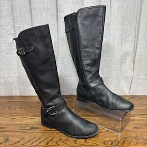 Naturalizer Jenelle Wide Calf Black Leather Riding Boots Women’s 8.5 Zip Buckle