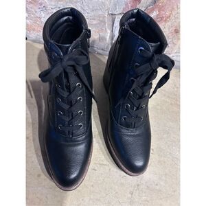 Naturalizer Jet Black Madalynn3 Lace Up Chunky Heeled Boots Women’s Size 9.5