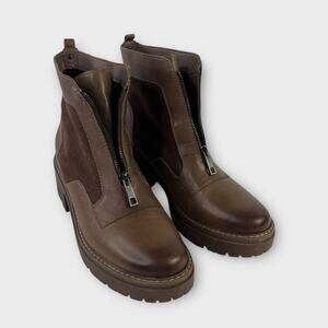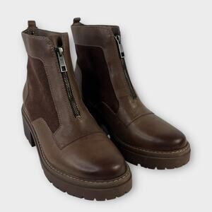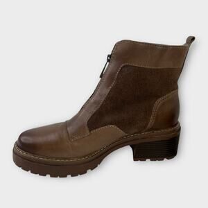 Naturalizer Jett Brown Leather Lug Sole Front Zip Ankle Bootie Size 12