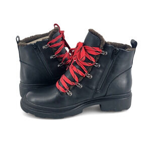 Naturalizer Julian Black Leather Ankle Boots Size 9.5M Faux Fur Lined Winter Lace Up