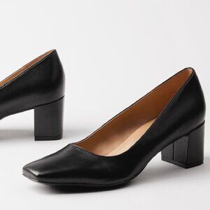 Elevated comfort. The classic all-day pump with a modern square toe and easy slip-on fit so you can move freely throughout your day and night. Get there beautifully. Classic square toe pump with a comfortable fit. Leather or metallic leather upper. Contour+ technology for a premium fit and all-day comfort experience. Flexible, non-slip outsole. 2.25-inch block heel. Consciously packaged: 100% of our shoe boxes are made of 80% recycled paper + soy-based ink. Designed using sustainable materials. WHY YOU'LL LOVE IT: Ingenious elegant utility. All-day heels that scale the height of chic with endless versatility and comfort that is downright clever.