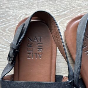 GUC – Minor scuffing along footbed at toe and heel (see pics). Soles show light dirt but not worn down.