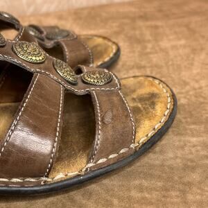 Naturalizer Low Heel Gladiator Sandals Brown Strappy Leather Floral Medallions