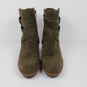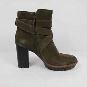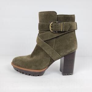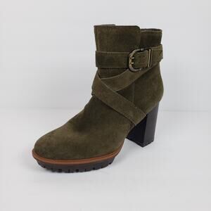 Naturalizer Lyra Womens Size 8 Olive Green Suede 3.5" Heel Bootie Boots Shoes