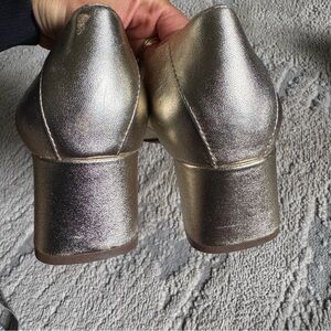 Naturalizer Malynn gold pointed Toe Pumps leather slip on low block heel V-topline