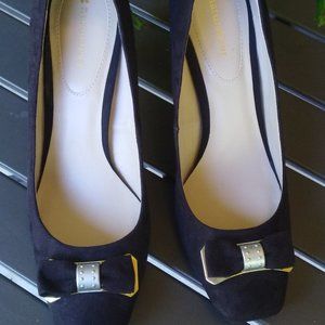 Naturalizer Marlena Womens size 10M US Suede Bow With Gold Accent Block Heel Black