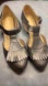 Elegant metallic heels with fringe detail. Comfortable and stylish for any event.