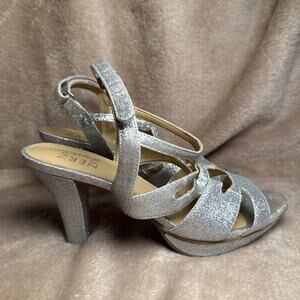 Naturalizer Metallic Silver Sparkly Glitter Open Toe Strappy Heels Women’s Sz 8M
