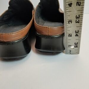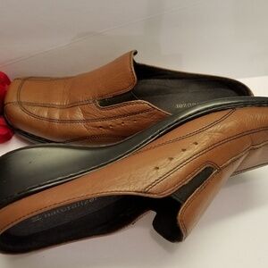 Cognac wedge heel mules in EUC.