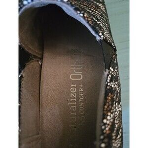 Naturalizer N5 Contour Ortho clogs Sz 4.5 are designed for comfort with a closed toe and slip-on style. The multicolor animal print leather upper material and lining make them stylish for casual wear. The low block heel and faux leather outsole provide support and durability. These shoes are available in a UK shoe size 2.5, US shoe size 4.5, and EU shoe size 34.5 with a medium shoe width. The insole material is also faux leather. These Naturalizer clogs are perfect for those who want to add a touch of animal print to their shoe collection.