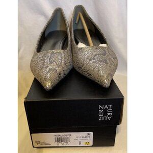 Naturalizer Natalia Kitten Heal Silver Snakeskin Womens Size 9 M New Pointed Toe